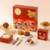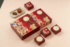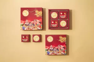 Hộp gấp gồm khay nhựa PVC đựng 4 hộp con và túi giấy cứng cáp đi kèm làm từ giấy mỹ thuật. Hình ảnh trên mặt hộp và túi được ép kim viền, phủ UV tạo nên sự sống động và sang trọng cho sản phẩm.